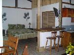 Las Palmas boasts of the best seat in the house with a large outdoor porch just perfect for enjoying every part of the beautiful view Rio Lindo Resort has to offer. From your private porch you can enjoy the ocean waves breaking, the Rio Baru gently flowing out to meet them, and the inviting azure pool surrounded by beautifully kept grounds. Swing in the Brazilian hammock or rock in the Costa Rican rocking chairs while you enjoy this amazing view.